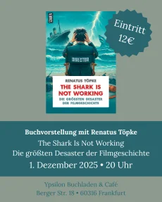 Am Montag, den 1. Dezember, um 20 Uhr, wird eine Buchvorstellung des Buchs The Shark Is Not Working. Die größten Desaster der Filmgeschichte mit Autor Renatus Töpke in der Ypsilon Buchhandlung in Frankfurt (Berger Str. 18, 60316 Frankfurt) stattfinden. Der Eintritt kostet 12 €. Wir freuen uns auf Sie!