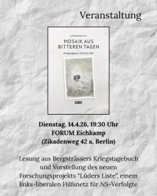 Lesung aus dem Kriegstagebuch und Vorstellung von Ludger Fittkaus neuem Forschungsprojekt "Lüders Liste", einem Hilfsnetz für NS-Verfolgte.